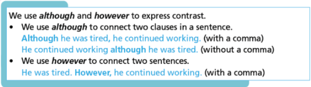 (Chúng ta sử dụng mặc dù và tuy vậy để diễn tả sự đối lập.)