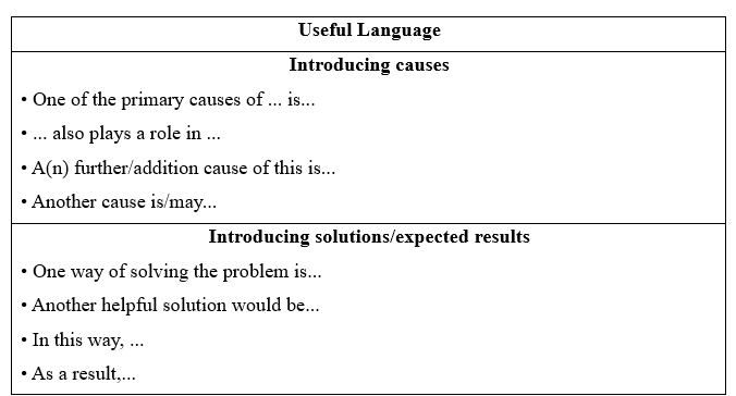 • Use appropriate phrases to introduce causes and solutions / expected results.