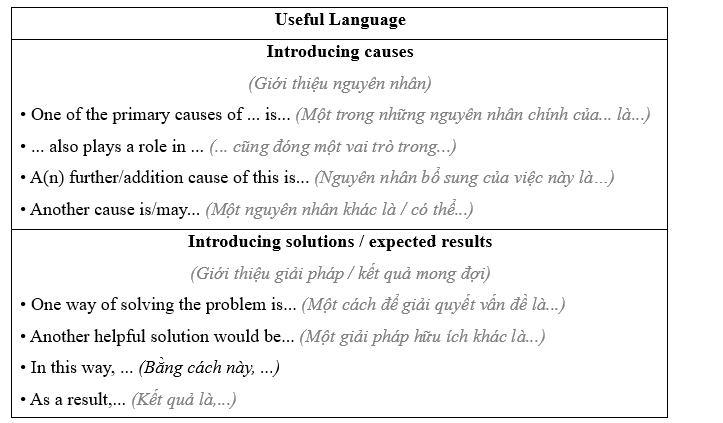 • Sử dụng các cụm từ thích hợp để giới thiệu nguyên nhân và giải pháp / kết quả mong đợi.