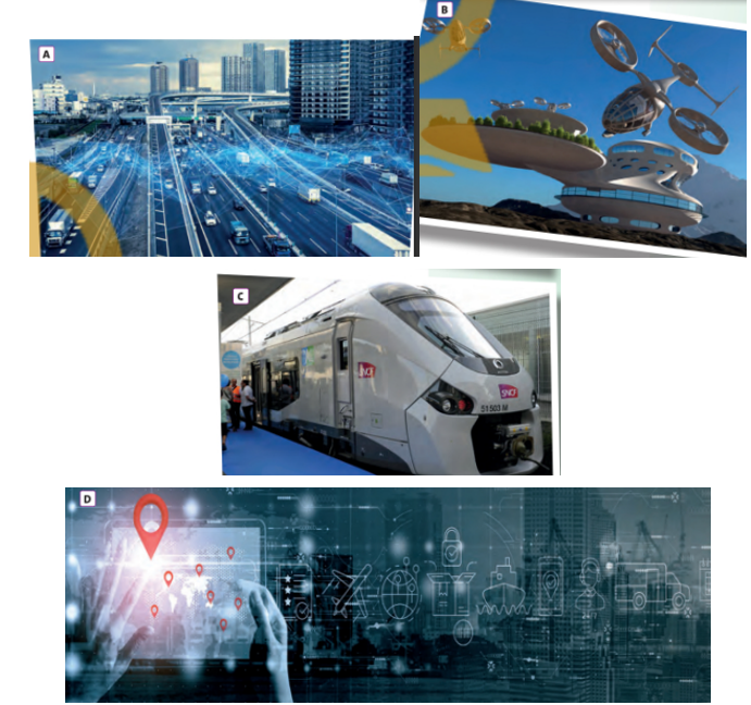As technology develops, highways, skylines, subways will be all transformed. Smarter sroadways and highways in cities outfitted with loT sensors will process all kinds of data in real time and alert users of the best transport options. Weather, crashes, traffic conditions will be communicated to users and smart stops will be found everywhere providing renewable energy, green hydrogen or even greener energy, ensuring efficiency and safety on every highway. Tunnels will also be a smart choice 10 because of the reduction of traffic congestion. Underground roads will be built in 3D with a lift system which will take vehicles deep underground and will allow traffic to attain the greatest speed without intersections.