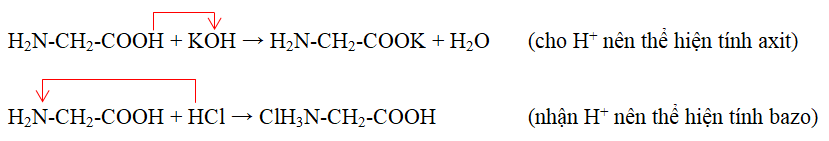 Vậy để chứng minh tính lưỡng tính của amino axit ta có thể dùng phản ứng của chất này lần lượt với dung dịch KOH và dung dịch HCl: