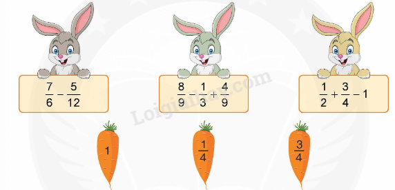 c) $2 – \frac{7}{6} = \frac{{12}}{6} – \frac{7}{6} = \frac{5}{6}$. Mà $\frac{2}{3} < \frac{5}{6}$