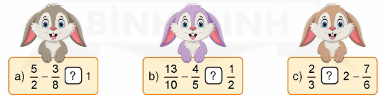 a) $\frac{5}{2} – \frac{3}{8} = \frac{{20}}{8} – \frac{3}{8} = \frac{{17}}{8}$ . Mà $\frac{{17}}{8} > 1$