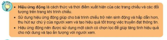 3. Sử dụng hiệu ứng động cần lưu ý những điều gì? Tại sao?