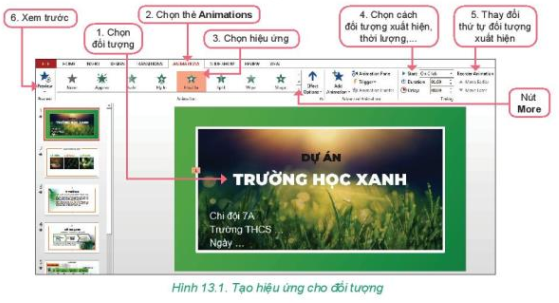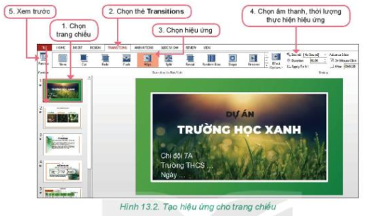 Thực hiện các bước như trong Hình 13.1 và Hình 13.2 để tạo hiệu ứng cho các trang và đối tượng.