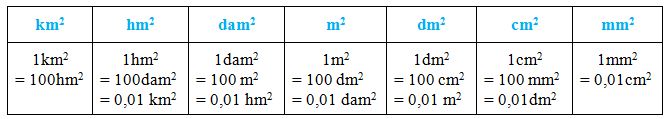 Trong bảng đơn vị đo diện tích :