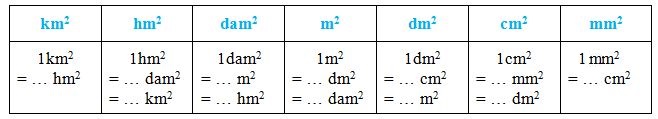Trong bảng đơn vị đo diện tích :
