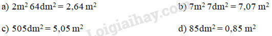 Áp dụng cách chuyển đổi:  \(1dm^2=\dfrac{1}{100}m^2=0,01m^2\).
