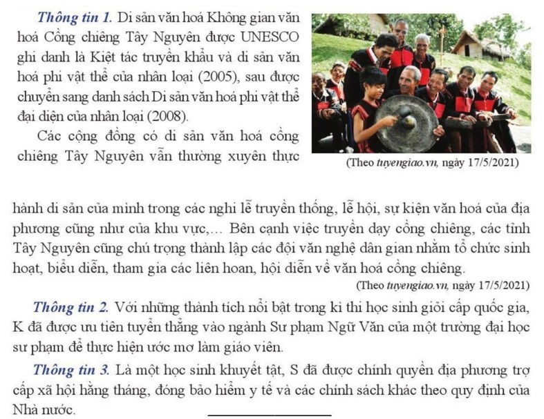+ Thông tin 1: Văn hóa – Phát triển và bảo tồn các di sản văn hóa, xây dựng các đội văn nghệ, tổ chức biển diễn,… để quảng bá văn hóa Cồng chiêng Tây Nguyên.