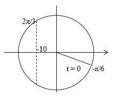 + Lần 1, vật qua li độ x = -10 cm theo chiều âm ứng với góc quét từ \( – \pi /6\) đến \(2\pi /3\). Trong giai đoạn này khoảng thời gian sinh công dương là T/4 ( ứng với cung phần tư thứ nhất).