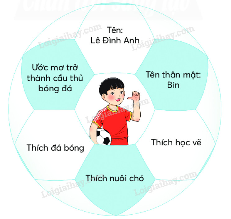 – Trong phần giới thiệu của bạn Đình Anh, em thích nhất là phần chia sẻ ước mơ được trở thành cầu thủ bóng đá của bạn ấy.