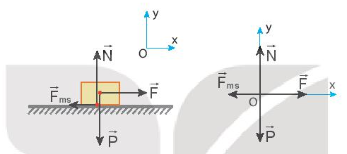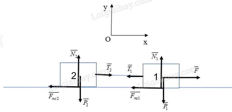 Thùng sách (được coi là chất điểm) chịu tác dụng bởi 4 lực: lực ma sát \(\overrightarrow {{F_{ms}}} \), trọng lực \(\overrightarrow P \), phản lực \(\overrightarrow N \), lực kéo \(\overrightarrow F \)