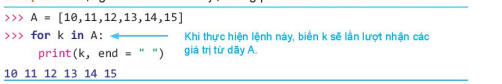 – Có thể duyệt nhanh từng phần tử của danh sách bằng toán tử in và lệnh for mà không cần sử dụng range