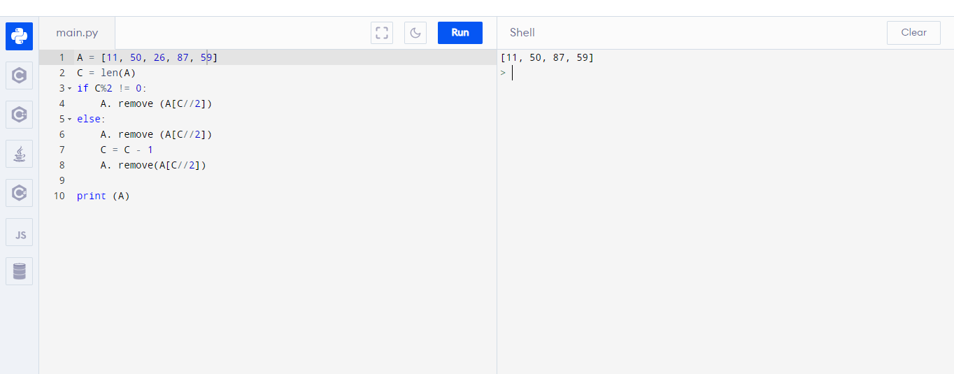 – Xóa đi hai phần tử ở chính giữa của dãy nếu số phần tử là số chẵn.