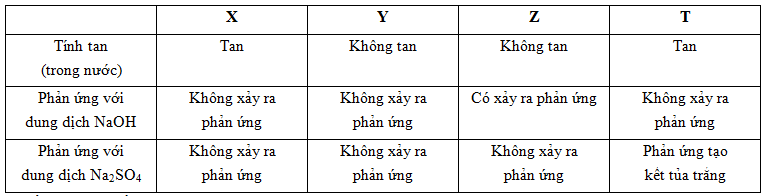 – Z, T tan trong nước => Ba(OH)2, NaOH