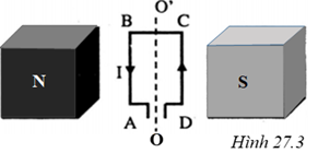 Một khung dây dẫn hình chữ nhật có dòng điện chạy qua được đặt trong từ trường giữa hai nhánh của một nam châm hình U. Khung dây sẽ quay đến vị trí nào thì dừng lại