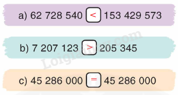 – Nếu hai số có cùng số chữ số thì so sánh từng cặp chữ số ở cùng một hàng kể từ trái sang phải.