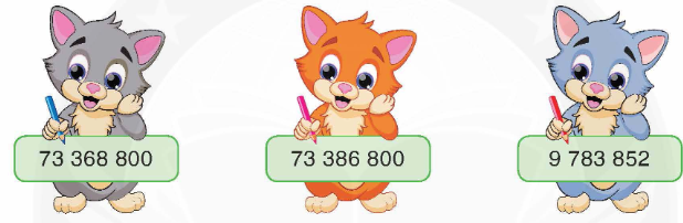 Vậy các số được xếp theo thứ tự từ lớn đến bé là 73 386 800; 73 368 800; 9 783 852