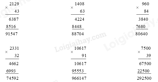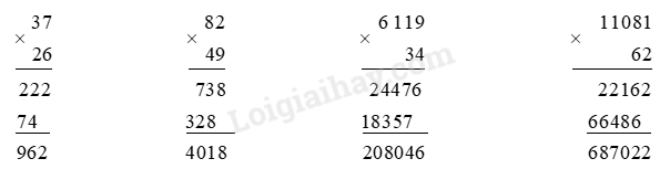– Thực hiện nhân lần lượt từ phải sang trái.