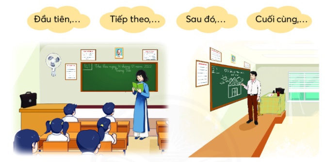 Em quan sát tranh rồi nhớ lại một tiết học mà thầy cô của em đã dạy để viết lại.