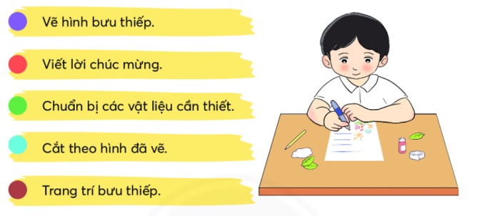 Thứ tự các việc cần làm một tấm bưu thiếp: