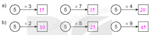 Tính nhẩm kết quả phép tính dựa vào bảng nhân 5.