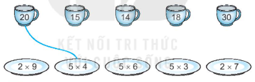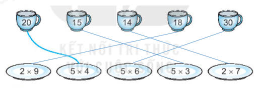 Nối mỗi cái đĩa với chiếc cốc ghi kết quả phéo nhân thích hợp.