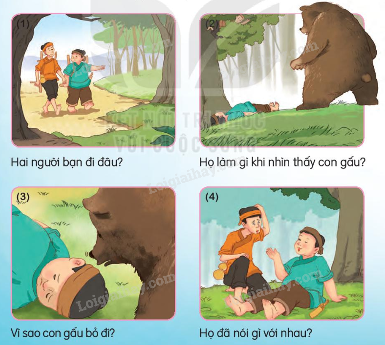 Em quan sát kĩ các bức tranh và trả lời các câu hỏi tương ứng phía dưới mỗi tranh.