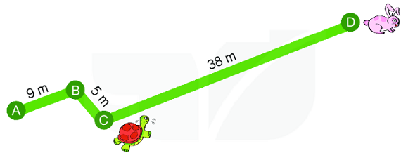 Thỏ và rùa cùng xuất phát một lúc đi trên đường gấp khúc ABCD, từ A đến D. Khi thỏ đến D thì rùa mới đến C.