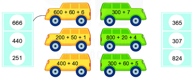 – Xác định số trăm, số chục, số đơn vị của mỗi số rồi viết số thành tổng các trăm, chục đơn vị.