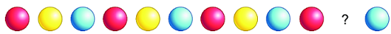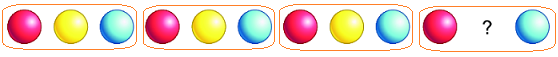 b) Học sinh quan sát để tìm ra quy luật của dãy các khối “Cứ ba khối cầu (màu đỏ, màu vàng, màu xanh) làm thành một nhóm và các nhóm lặp lại giống nhau”, từ đó tìm được hình thích hợp đặt vào dấu “?”.