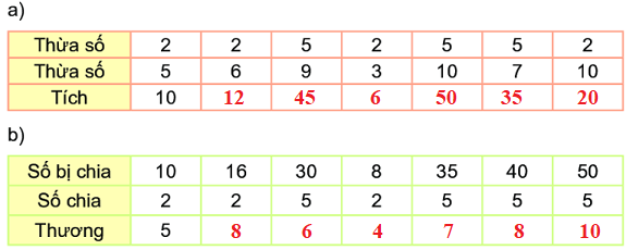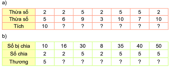 – Thực hiện tính nhẩm các phép nhân, phép chia dựa vào bảng nhân 2, bảng nhân 5, bảng chia 2, bảng chia 5 đã học.