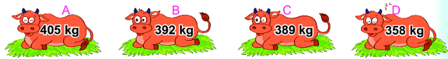 Cân nặng của mỗi con bò được cho như sau: