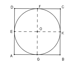 Khi đó ta có \(OE = OF = OK = OG = \dfrac{a}{2}\) . Hay \(O\) là tâm đường tròn nội tiếp hình vuông \(ABCD\) .