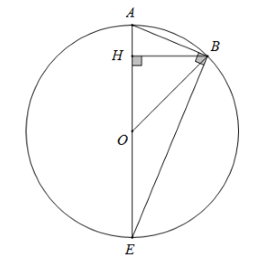 Vì AE là đường kính của (O) nên ∆ ABE vuông tại B, áp dụng hệ thức lượng trong tam giác vuông ta có