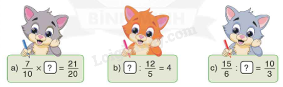 a) $\frac{7}{{10}} \times .?. = \frac{{21}}{{20}}$