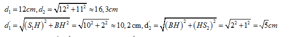 \(O{M_2} = \sqrt {d_{{M_2}}^2 – O{A^2}}  = \sqrt {8,{8^2} – {4^2}}  = 7,84cm\)