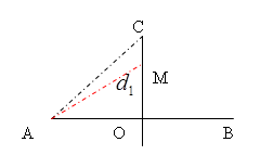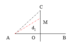 \(O{M_1} = \sqrt {d_{{M_1}}^2 – O{A^2}}  = \sqrt {7,{2^2} – {4^2}}  = 5,99cm\)