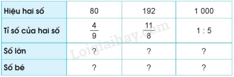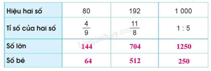 Hiệu hai số là 80, tỉ số của hai số là $\frac{4}{9}$