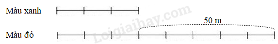 Cuộn dây màu đỏ có độ dài lớn hơn cuộn dây màu xanh là 50 m. Biết rằng cuộn dây màu xanh dài bằng $\frac{3}{8}$ cuộn dây màu đỏ. Tính độ dài mỗi cuộn dây.