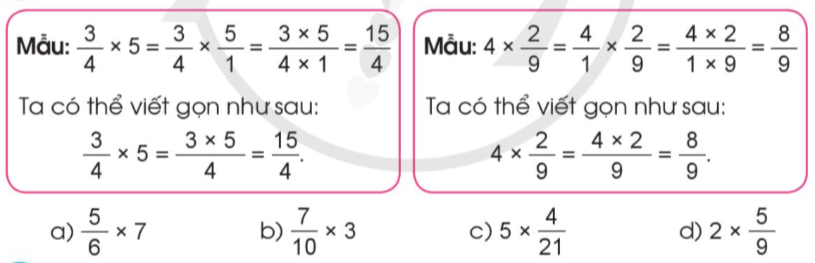 Muốn nhân phân số với một số tự nhiên ta lấy tử số nhân với số tự nhiên và giữ nguyên mẫu số.