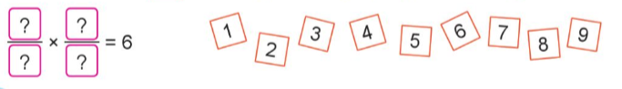 $\frac{3}{2} \times \frac{4}{1} = 6$ ;  $\frac{9}{1} \times \frac{2}{3} = 6$