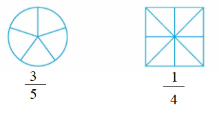 Phân số chỉ số phần được tô màu có tử số là số phần được tô màu, mẫu số là tổng số phần bằng nhau