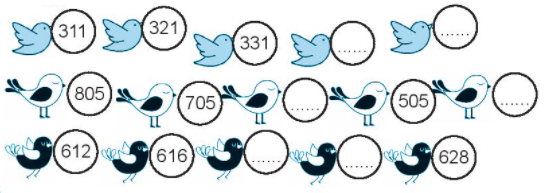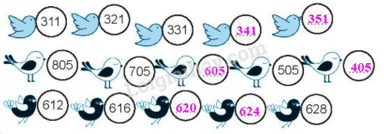 – Quan sát hình vẽ để xác định số trăm, số chục, số đơn vị thích hợp với mỗi tranh vẽ.