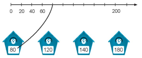 Nối mỗi số trên ngôi nhà với các số tương ứng trên tia số.