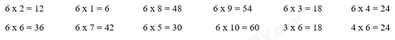 b) Kể một tình huống thực tế sử dụng phép nhân trong bảng nhân 6.