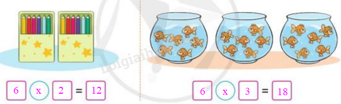 – Mỗi bình có 6 con cá, vậy 3 bình có 6 x 3 = 18 con cá.