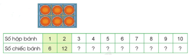 – Quan sát thấy mỗi hộp bánh gồm có 6 chiếc bánh.