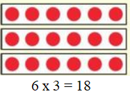 Vẽ vào bảng con 3 nhóm, mỗi nhóm 6 chấm tròn. Nêu phép nhân để tìm tất cả số chấm tròn đó.