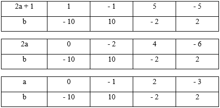 \(2{\rm{a}} + 1\) là số lẻ; \(2{\rm{a}} + 1\) là ước của \( – 10\)
